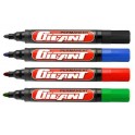 Markery permanentne na bazie alkoholu, o neutralnym zapachu. Okrągła końcówka. Pozostawione bez zatyczki nie wysychają nawet do 3 tygodni. Grubość linii pisania 1,5 mm.
